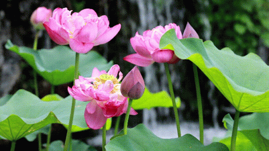 看那蜷曲的花苞,如蓄势待发的箭矢,直指苍穹。胭脂、粉白或雪青的花瓣在热风中缓缓舒展,层层绽开,袒露出金丝缠绕的蕊心,灿若骄阳。她,始终挺拔向上,以钢筋铁骨般的茎秆,破水而出,撑起一片卓然不群的天地。